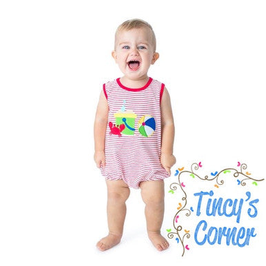 Introduce your little one to the joys of the beach with our Beach Ball Applique Infant Bubble. Made with soft and comfortable fabric, this bubbly outfit features a cute beach ball design that will surely bring a smile to your child's face. Perfect for a day of fun in the sun!