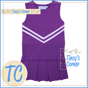 "Introducing the Trotter Street Kids Cheer Uniform. Made with high-quality fabric, this cheer uniform features a stylish cheer top and skort that is both timeless and on-trend. The perfect choice for any athletic event, this cheer uniform is sure to make your little one feel confident and fashionable."