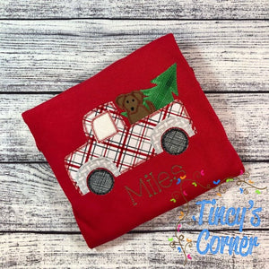 Christmas Truck with Dog and Tree Applique T-Shirt