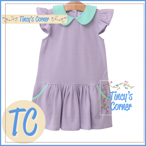 "Introducing the Genevieve Stripe Dress for girls. Made with high-quality fabric, this dress features a stylish stripe pattern that is both timeless and on-trend. The perfect choice for any occasion, this dress is sure to make your little one feel confident and fashionable."
