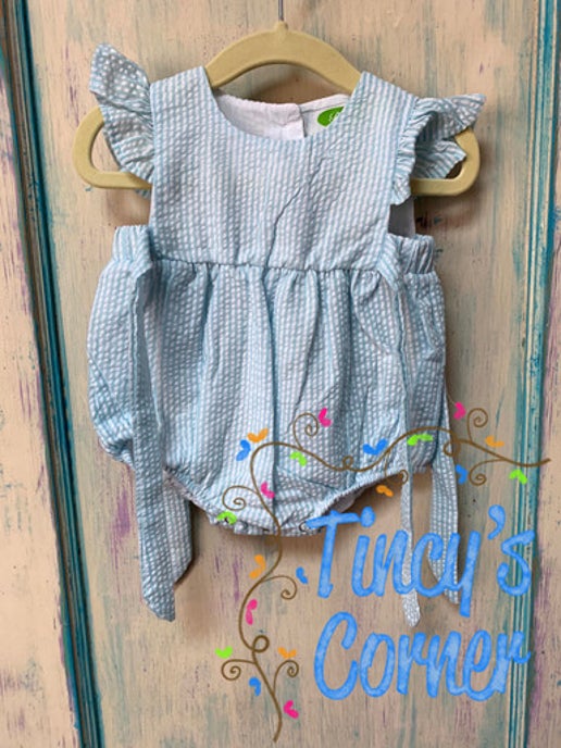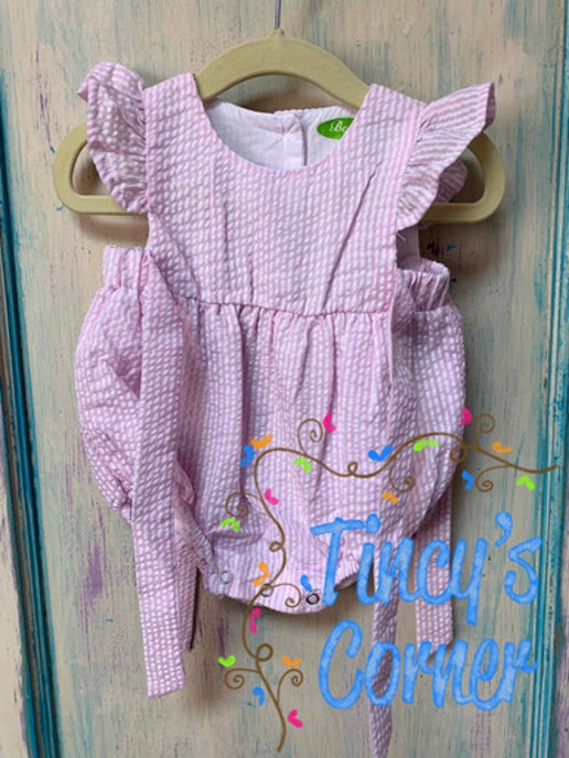 Crafted from soft and lightweight seersucker fabric, this girl's bubble outfit is perfect for warm weather. The classic style and adjustable straps provide a comfortable and versatile fit, while the durable material ensures long-lasting wear. A must-have addition to any little girl's wardrobe.