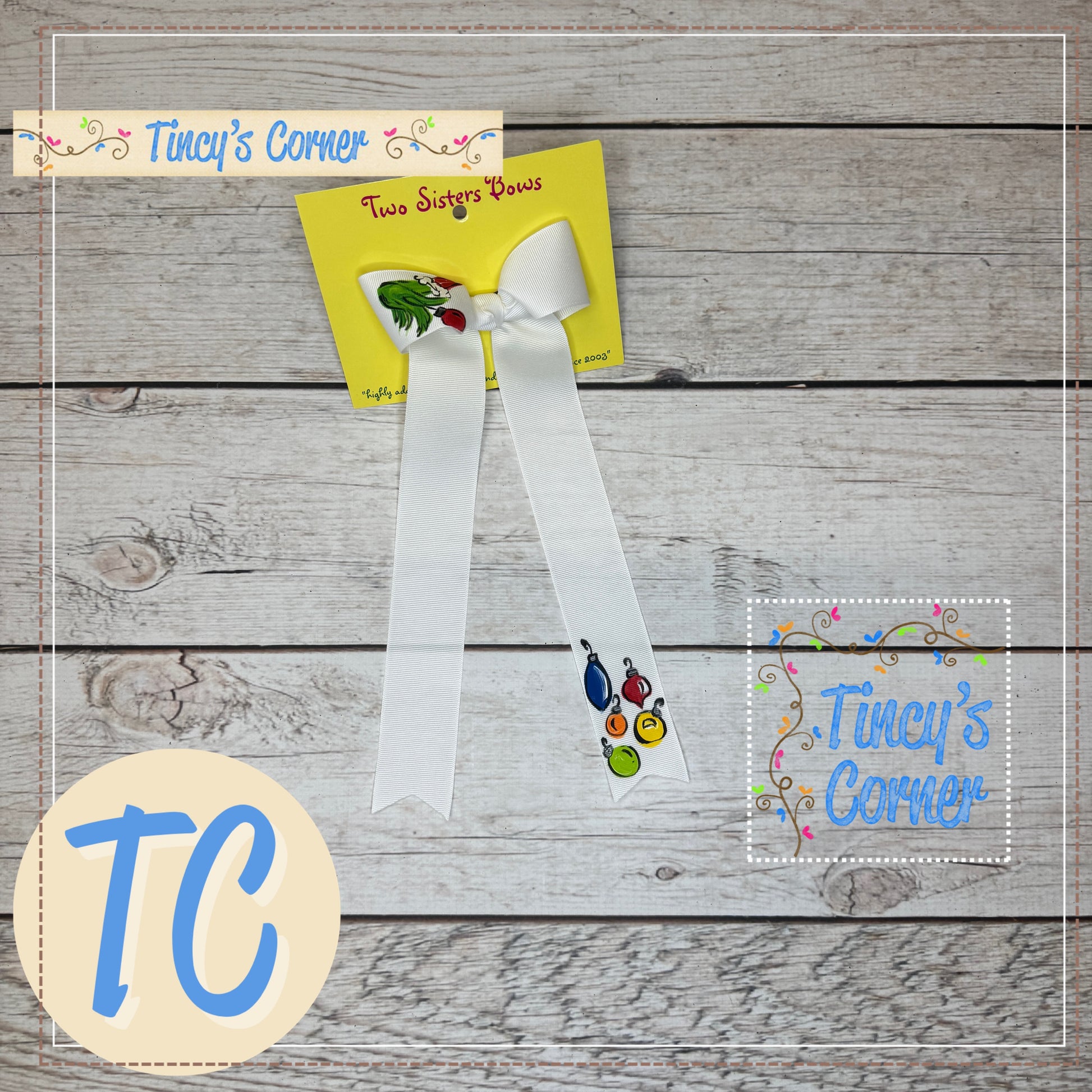 Grinchy Ornaments White LT Hair Bow