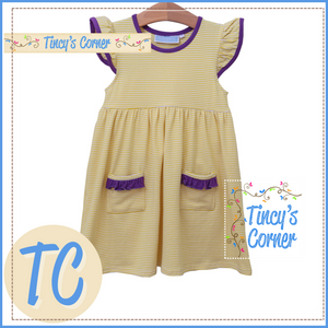 This Lucy Stripe Dress for girls features a playful yet sophisticated striped design. Made with high-quality materials, this dress is comfortable and durable for everyday wear. The stylish cut and fit will make any young girl feel confident and fashionable. Perfect for any occasion.