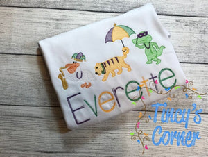 Mardi Gras Animal Parade Embroidery T-Shirt