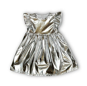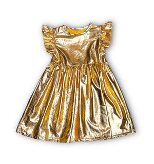 This Metallic Dress for girls shimmers with a unique metallic finish, adding a touch of glamour to any occasion. The lightweight fabric provides comfort and the trendy design exudes confidence. Elevate your little one's style game with this must-have dress.
