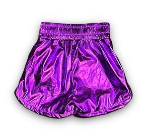 These Metallic Shorts for girls are made with a stunning metallic material that adds a touch of shine to any outfit. The lightweight and breathable fabric provides maximum comfort and the elastic waistband ensures a perfect fit. Perfect for adding some glam to any summer look.