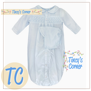 A simple and traditional smocked bag that is perfect for coming home from the hospital or babies first photos!