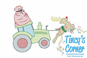 Reindeer Flying Tractor Embroidery T-Shirt