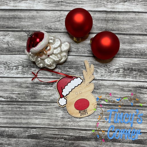 Rudolph with Red Nose and Santa Hat Christmas Ornament