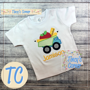 School Supplies Dump Truck Applique T-Shirt
