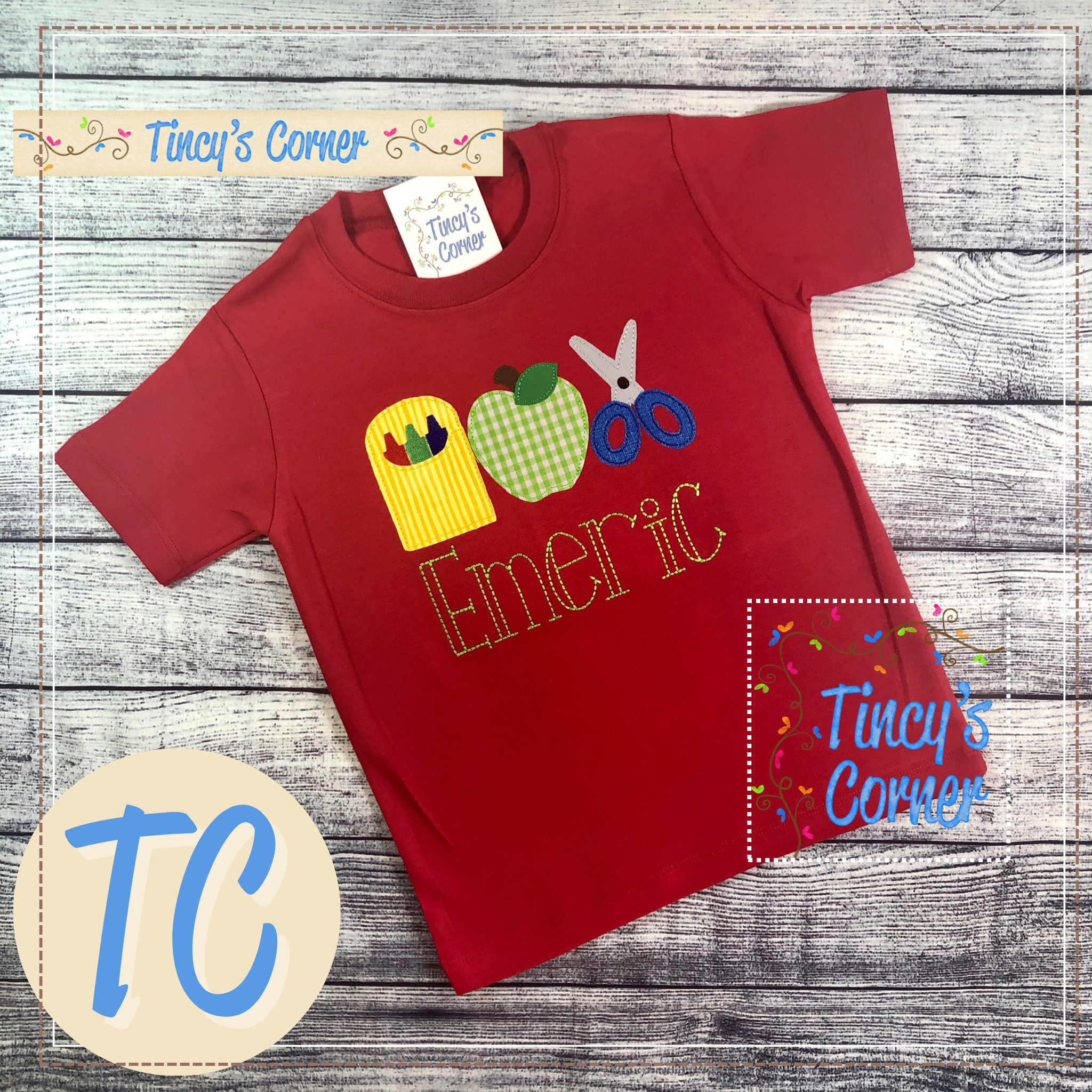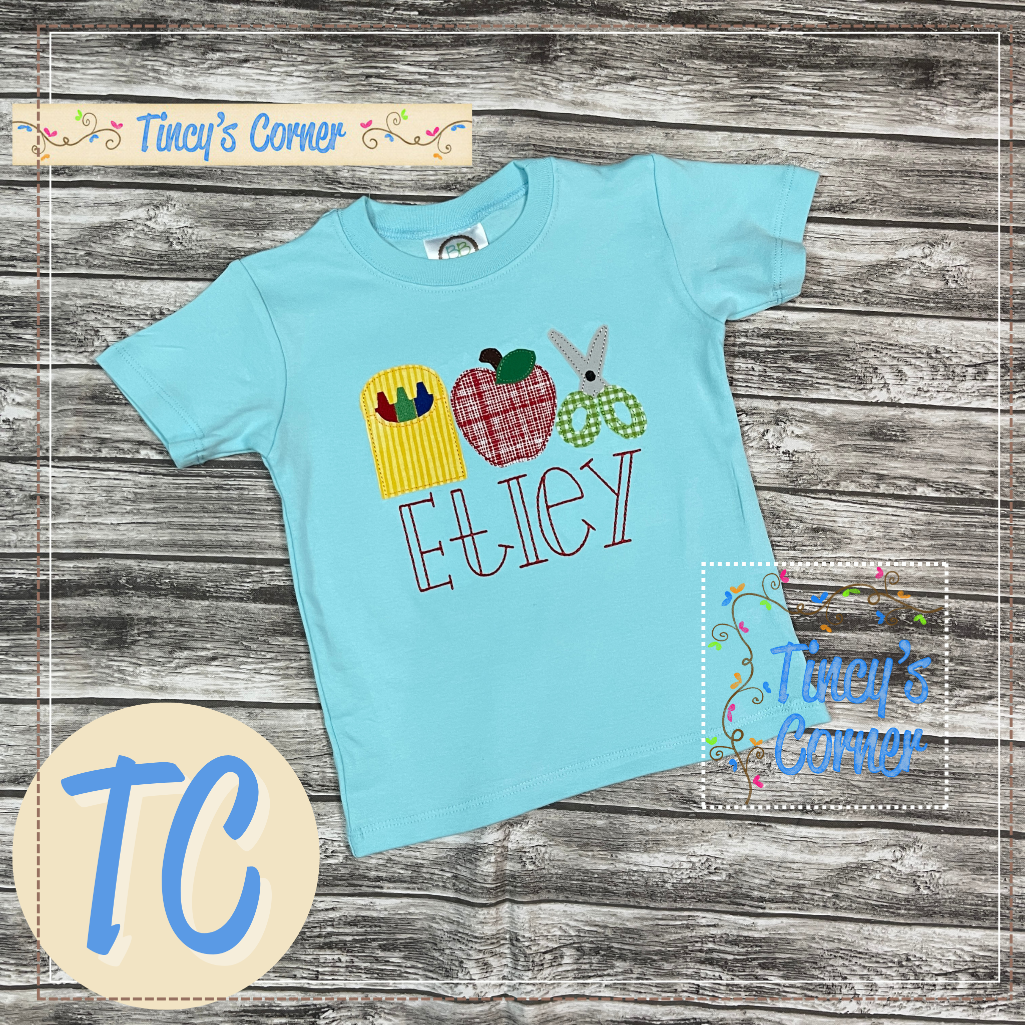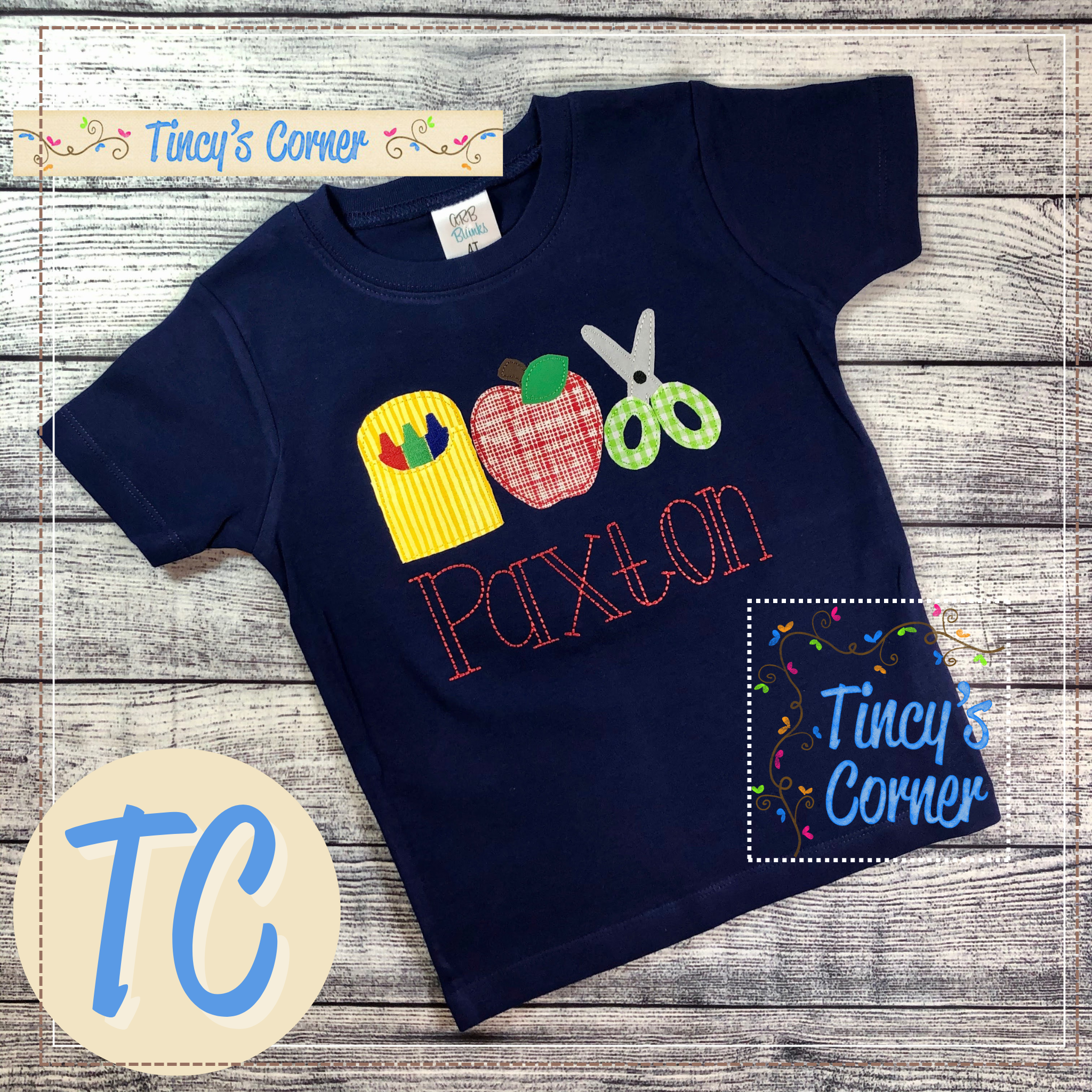 - OPTIONAL: Include personalization/design preferences in the space provided in this listing or email customerservice@tincyscorner.com for examples. Refer to photos for font and thread color options at https://tincyscorner.com/pages/fonts-thread-chart .