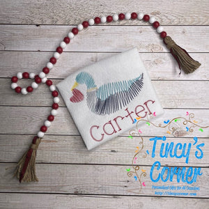 Scribbled Mallard Duck with Heart Embroidery T-Shirt