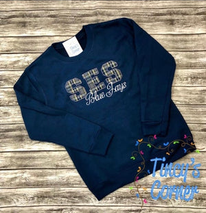 SES Blue Jays Elementary Plaid Applique Sweatshirt