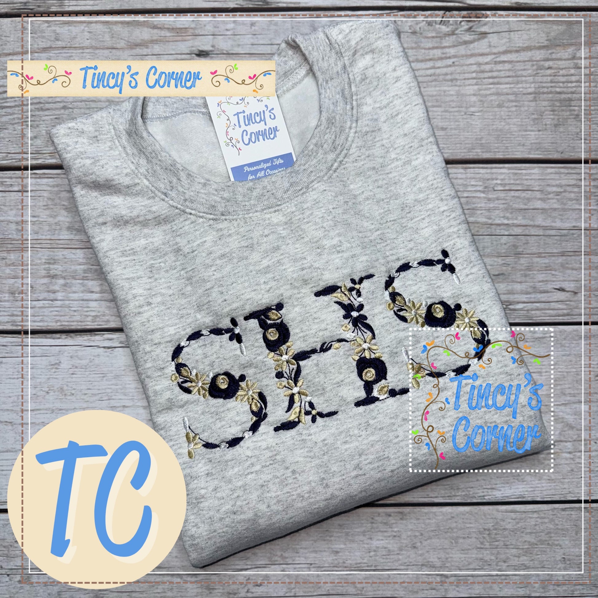 - SHS Floral embroidered in various thread colors - State in the order notes at checkout if you would like different thread colors. See photo in this listing.