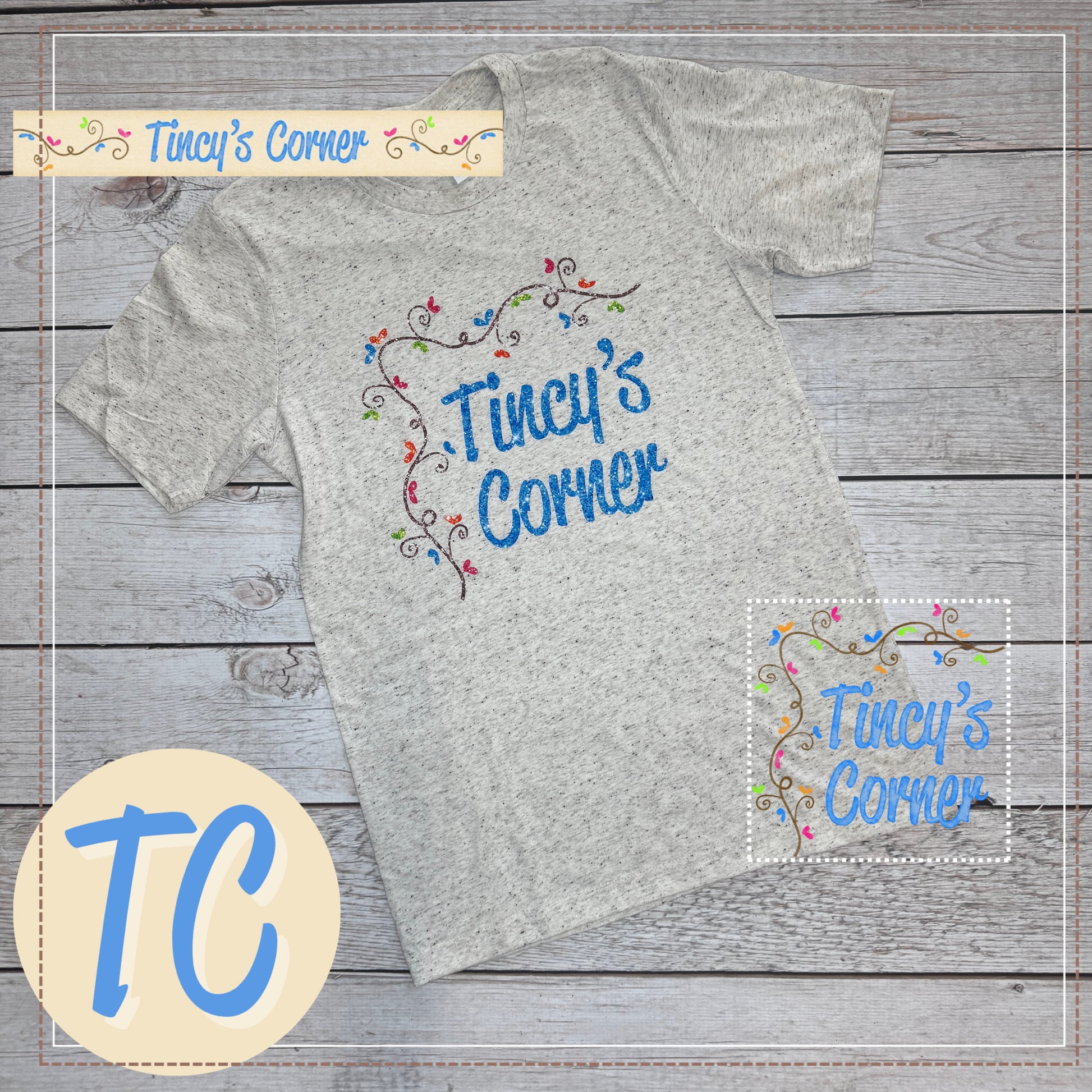 Introducing Tincy's Corner Faux Sequin/Glitter T-Shirt. The perfect addition to any wardrobe for a touch of sparkle and shine. Dare to be different with Tincy's Corner Faux Sequin/Glitter T-Shirt.