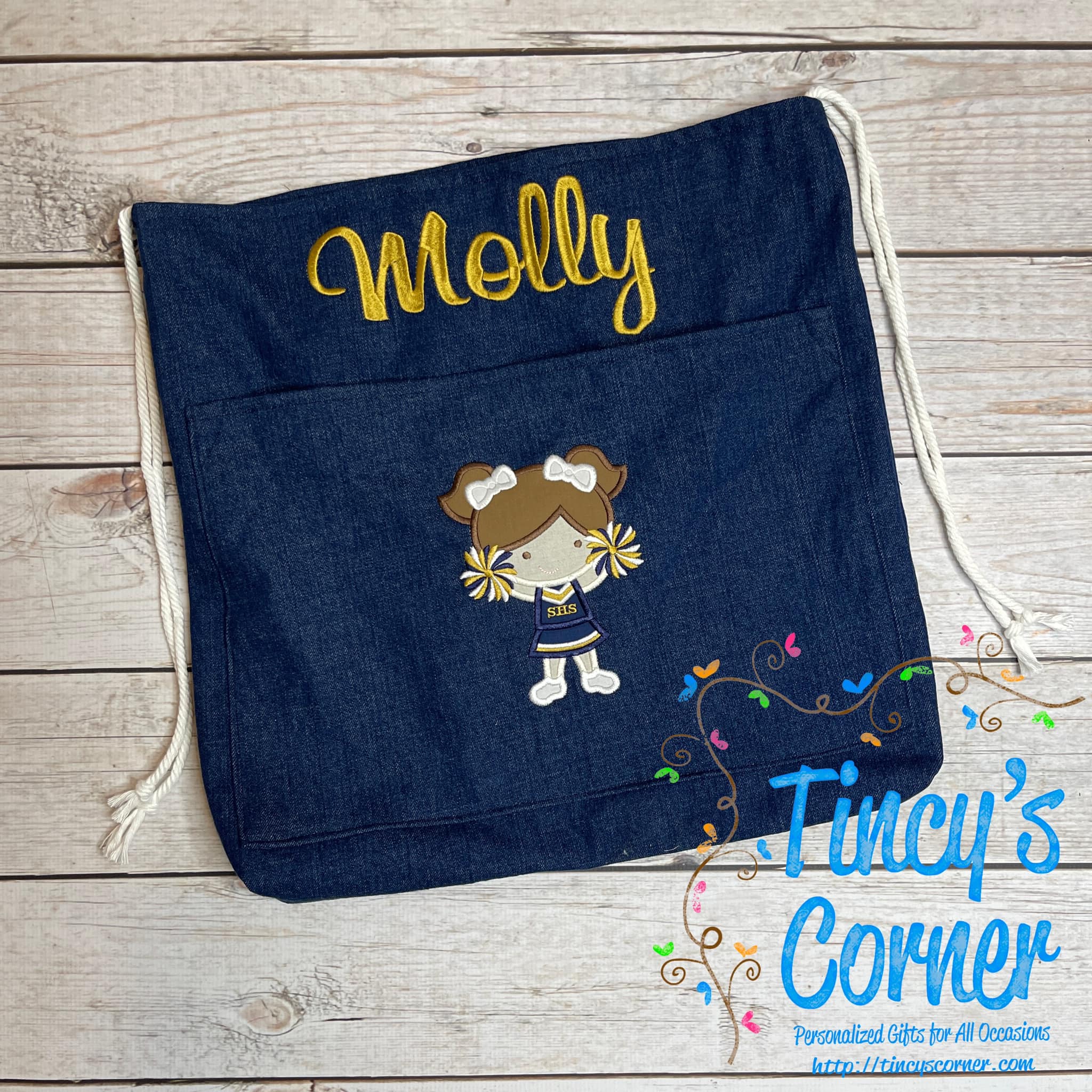 Select Applique design if you want an applique on the pocket. Leave information in the notes at checkout on the type of applique design you want other than what is listed. First or Last name is included with the applique design. Please include first or last name and fabric style/color choice for the applique design. All of the photos are applique designs.