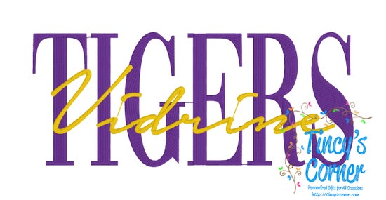 - Tigers Vidrine embroidered in two thread colors - Purple and Goldenrod. State in the order notes at checkout if you would like different thread colors. See photo in this listing.