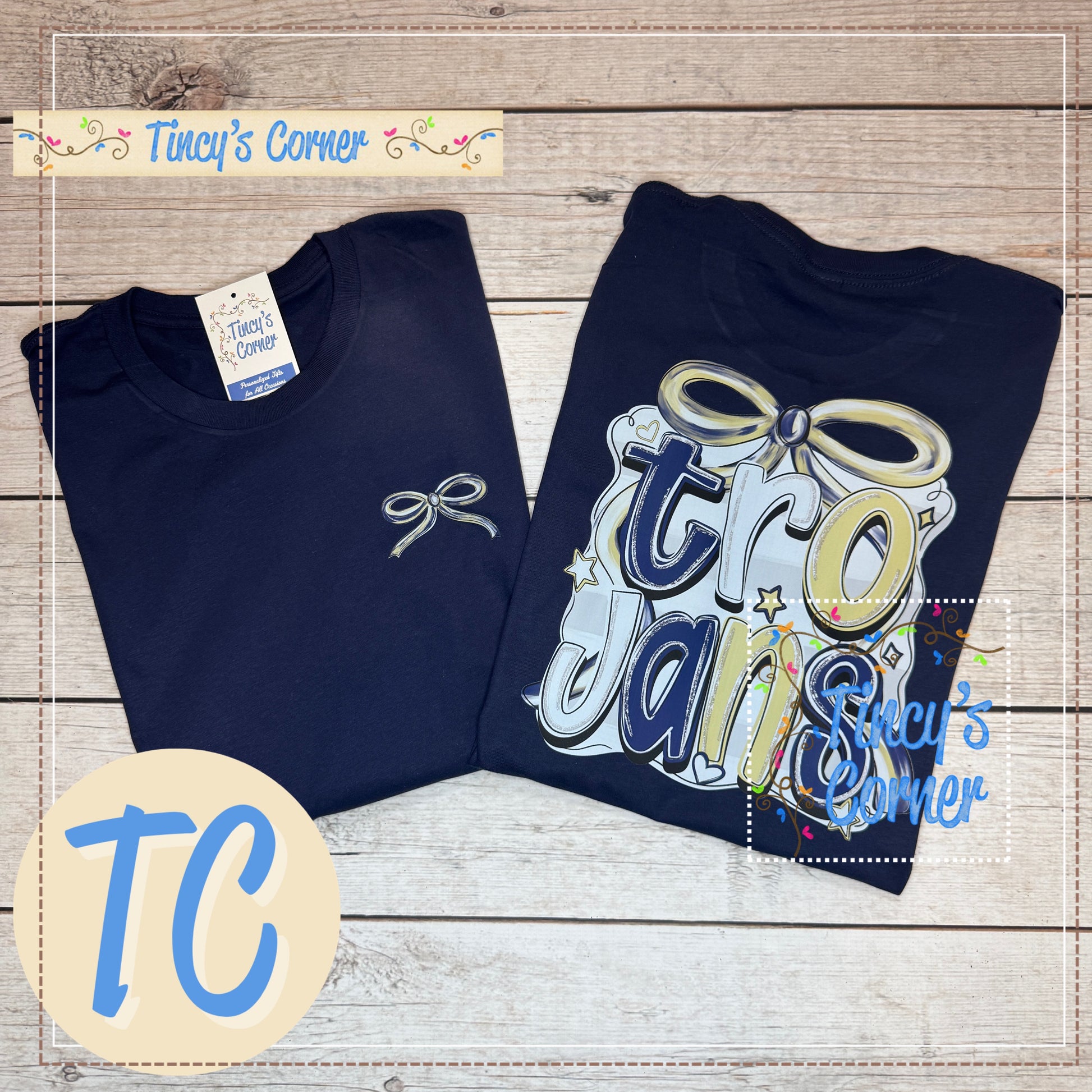 Please contact us at (337) 363-1810 or customerservice@tincyscorner.com if you have any questions about the personalization and placing your order.