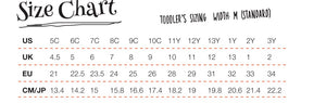- Fit: For best fit, measure your child's foot from heel to length of the longest toe. Our size guide shows the best size according to your child's foot length. If they are between sizes, we recommend sizing up.